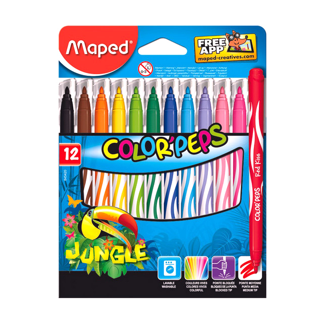 Fibras y Microfibras, LibreríaFibras Escolar Maped Jungle X12