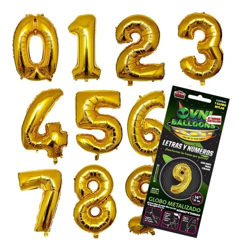 Globos De Numeros Metalizado 14″ Dorados
