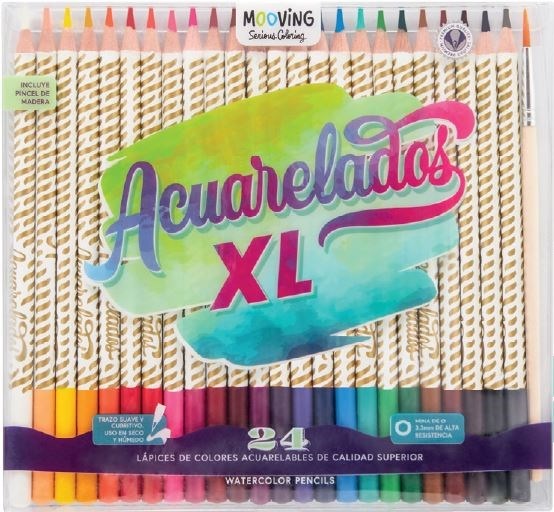 Lapices De Colores Mooving Acuarelables x 24 Largos